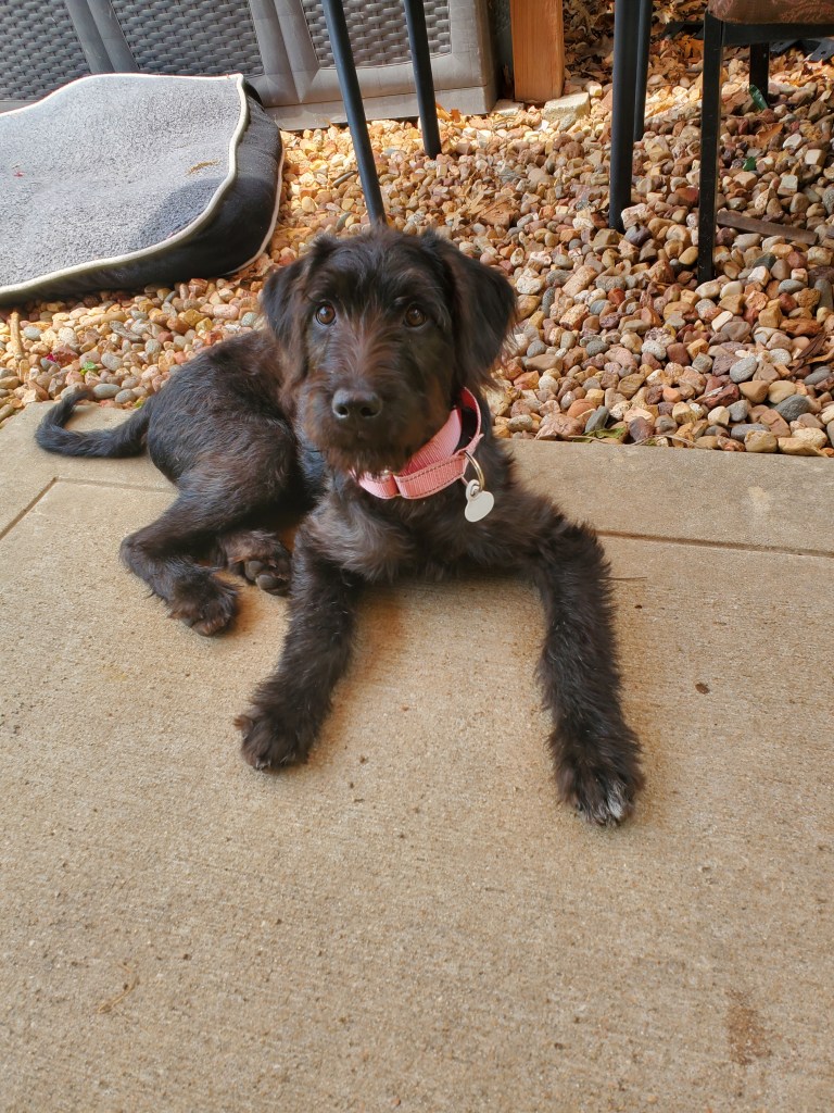 Ebony’s so incredibly smart. I swear she understands what we’re saying . Her mother a standard poodle, and if like human children they get their intelligence from the mother. 😆 not to slam labs (father) by any means, but this is something I haven’t seen in awhile. She’s learning all commands and responding and doesn’t seem to forget. She’s an incredible puppy and I am incredibly lucky.