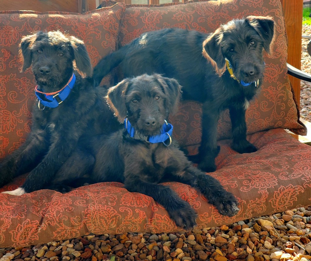 These puppies are scary smart. A foster posted her 3 month old, Ebony’s sibling, doing a a sit, then to a down stay…Ebony can do a sit. They’re very focused. As I can concentrate now on just Ebony I am very excited to see hiw it goes!